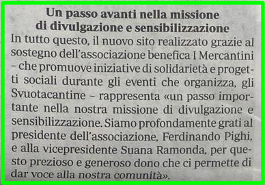 continueremo a essere disponibili a supportare, con lo stesso entusiasmo, altre realtà che condividono questi valori.