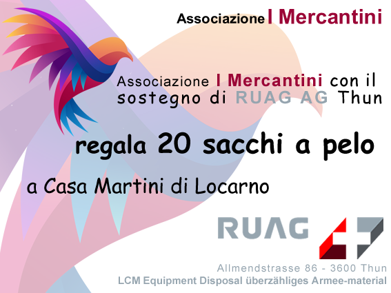 Il 23 marzo 2025 ci siamo messi in contatto con il signor Marc Rosenkranz, Capo del Servizio di Comando della Base Logistica dell’Esercito Svizzero, che ci ha indirizzati alla ditta Ruag AG di Thun. Dopo qualche mese di attesa, il 5 agosto sono arrivati da Berna i 20 sacchi a pelo.