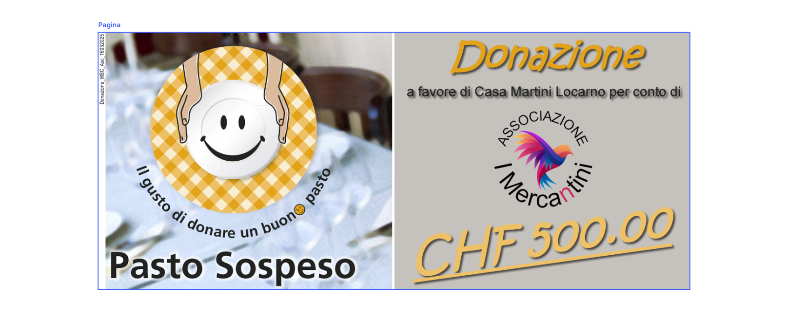 Abbiamo scelto di donare 100 pasti sospesi, corrispondenti a un contributo simbolico di CHF 5.– per ciascun pasto, alla Fondazione Francesco, che gestisce il Centro Bethlehem alla Masseria di Cornaredo (Lugano).