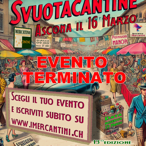 Il Mercatino Svuotacantine, nato nel 2018, ha registrato una crescita straordinaria, passando da 21 espositori nella prima edizione a 100 nel 2024. Per garantire a tutti l'opportunità di partecipare almeno una volta all'anno a questo evento unico, il comitato dell'associazione ha deciso di incrementare la frequenza degli appuntamenti, portandoli da 2 a 3 all'anno. A partire dal 2025, saranno quindi organizzati tre eventi annuali. Potrai iscriverti all'appuntamento che preferisci cliccando sul link sottostante.